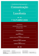 O Centro de Estudos de Comunicao e Sociedade da Universidade do Minho realiza, no dia 7 de Outubro, uma conferncia internacional sob o ttulo genrico “Comunicao e Lusofonia”.