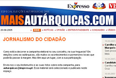 Importa assinalar, com agrado, a existncia no site que Expresso, SIC e Viso (empresas do mesmo grupo) decidiram dedicar s eleies autrquicas – maisautarquicas.com – de um espao para a publicao de textos (e fotos) produzidos pelos leitores/telespectadores.