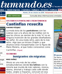 Uma delas – a que diz respeito imagem – um projecto muito curioso do dirio El Mundo. Por um dia, neste dia, a edio online tem uma verso inteiramente feita pelos leitores. Quando a visitei, abria com um texto sobre o regresso de ‘Cantinflas’ e apresentava ainda uma imagem de um petiz que algum considera ser o prximo rei da frmula um. O furaco Wilma aparecia no fim da pgina de abertura.